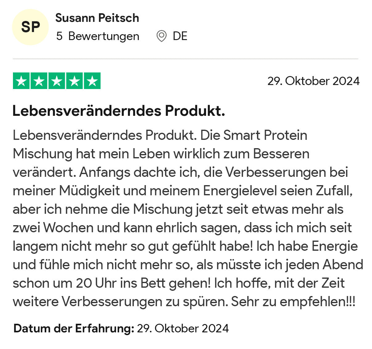 Seit ich Smart Protein Blend verwende, hat sich mein Leben um 180 Grad gedreht.