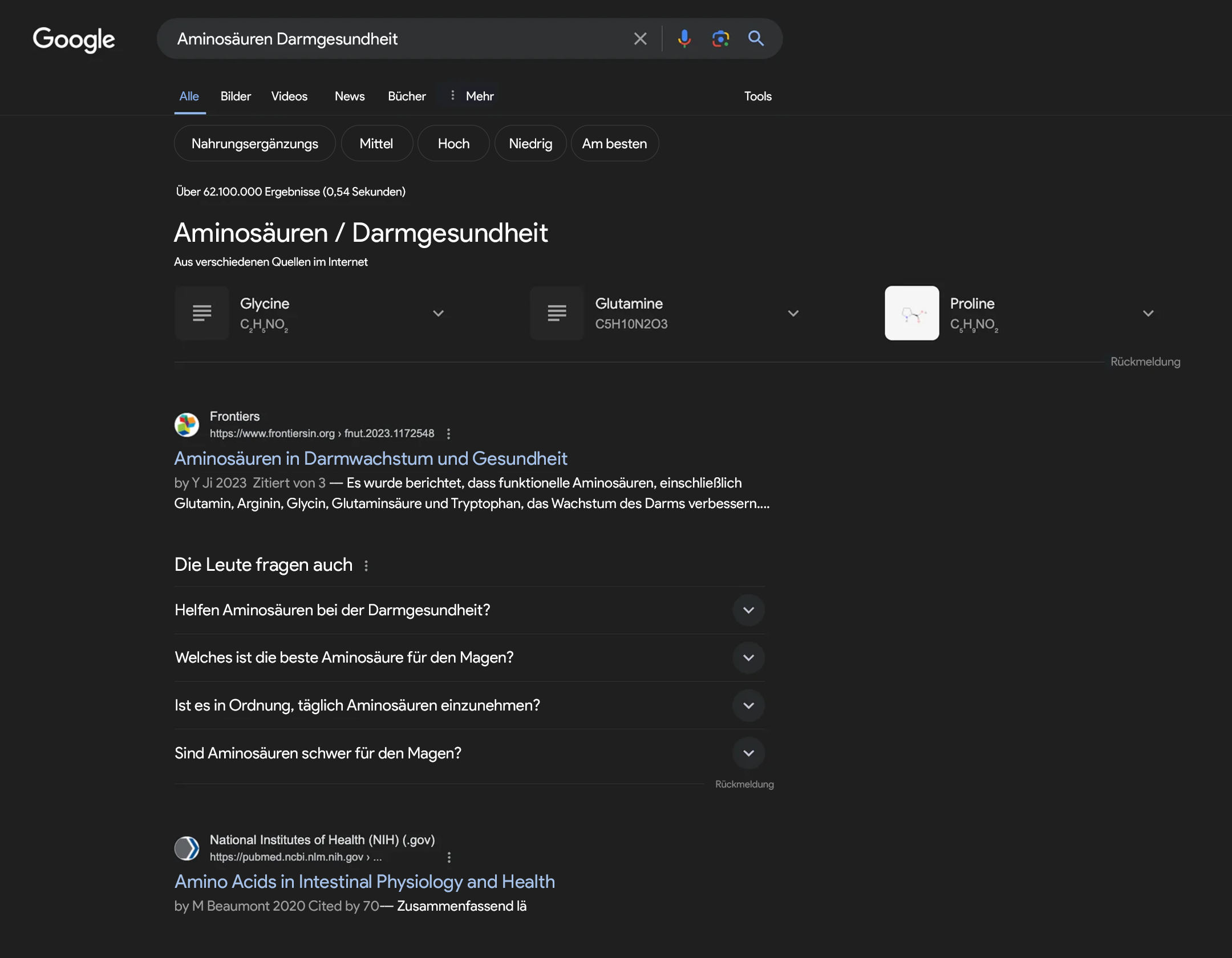 Und das ist keine Überraschung: Eine schnelle Google-Suche zeigt, dass Aminosäuren verbessern können Darmgesundheit.